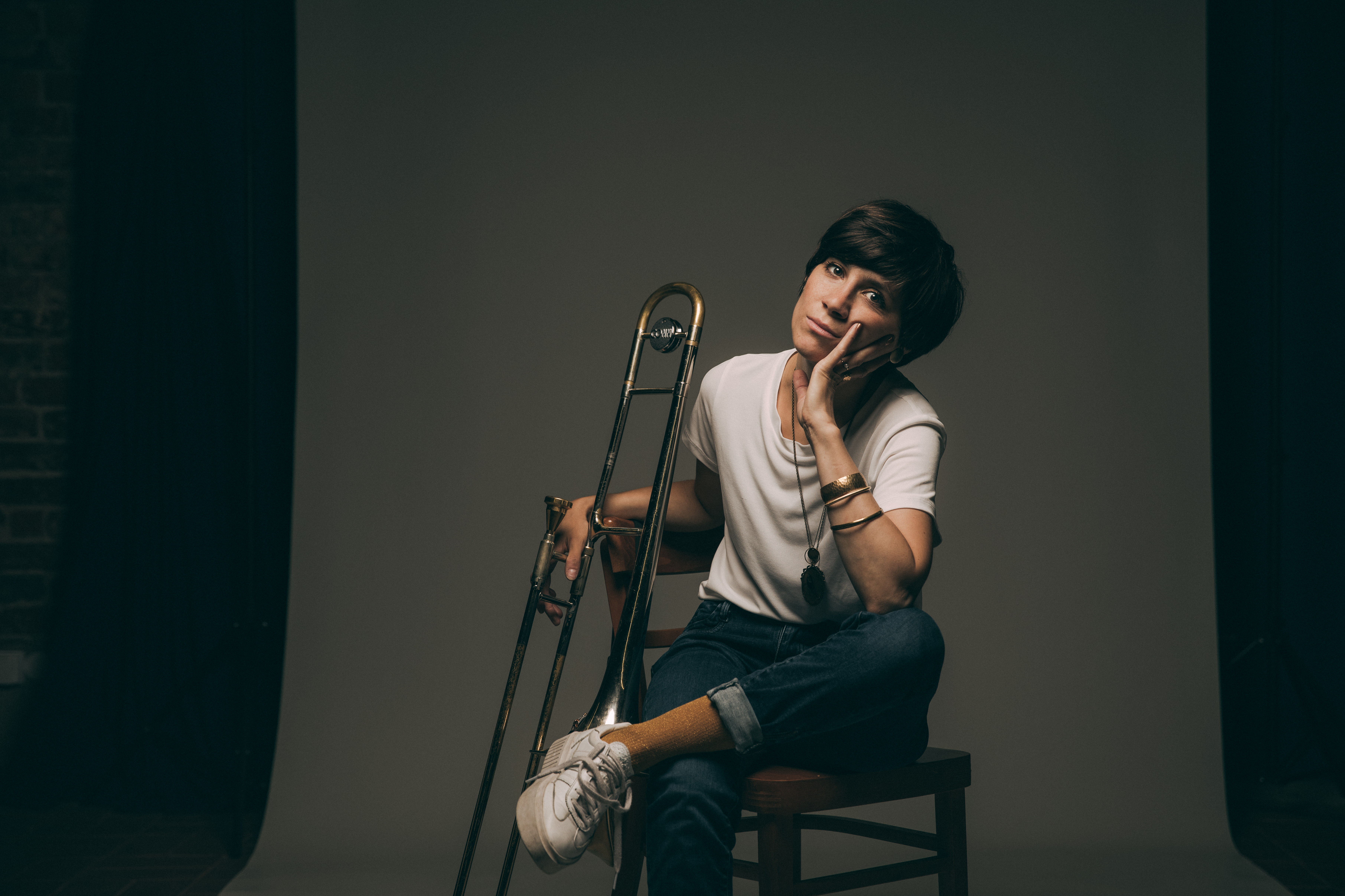 Eine Jazzband OHNE Bass, dafür mit Posaune und Bassklarinette und kein Platz für Eitelkeiten: Antonia Hausmann hat einen unverstellten Zugang zu einer emotionalen Erzählweise – Kammerjazz mit Pop-Appeal.