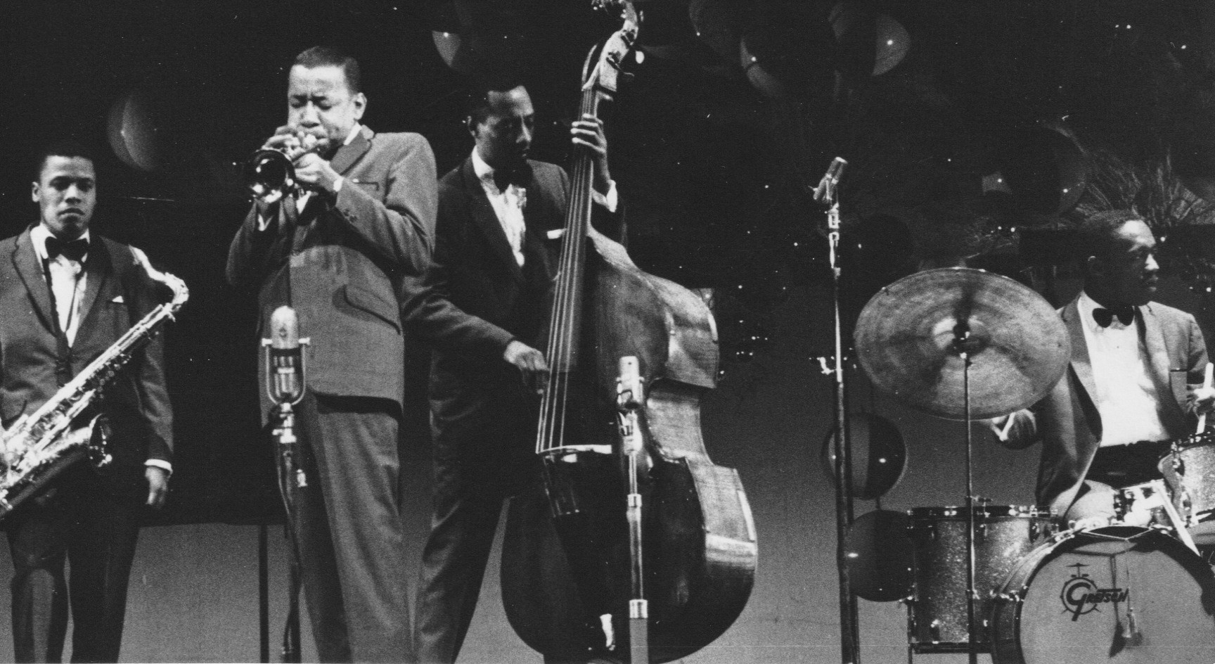 Summarizing the evolution of Blakey’s band is a tricky business, for the constant comings and goings of musicians made even what are now considered classic Messenger configurations subject to flux. In the years leading up to this 1961 concert we can identify the period the drummer collaborated with Horace Silver as foundational, but that partnership established components of its signature hard bop style and made some of its own immortal live recordings before adopting the Jazz Messengers moniker. When Silver left to form his own quintet in mid-1956, Blakey’s personnel carrousel really started to turn. There was a year of some consistency with Bill Hardman on trumpet alongside either Jackie McLean or Johnny Griffin or both in the front line; but there were a succession of pianists including, on one occasion, Thelonious Monk, and there was scant evolution in either ensemble style or the band’s book. That changed in the summer of 1958, when Benny Golson became the saxophonist and musical director, bringing fellow Philadelphians Lee Morgan, Bobby Timmons and Jymie Merritt into the fold as well as a brace of memorable originals and a tighter ensemble focus. Yet by the time this quintet’s sole studio recording appeared to great commercial and critical success, Golson had moved on, in search of his own ensemble.