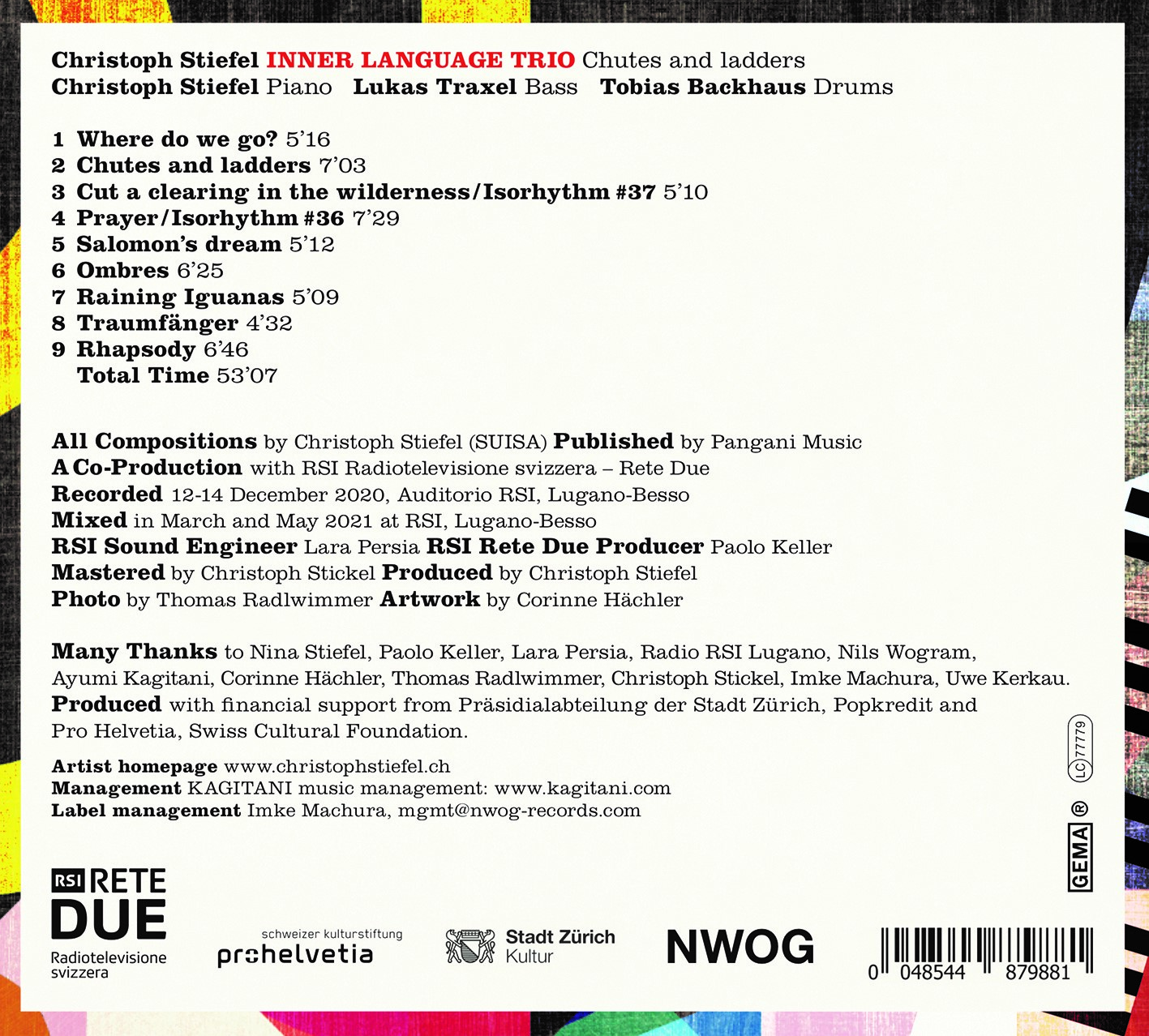 Das neue Album von Christoph Stiefels Inner Language Trio trägt den verspielten Titel „Chutes And Ladders“. Hinter der Anspielung auf das vor allem bei Kindern beliebte Leiterspiel verbirgt sich ein Hinweis auf den Corona bedingten Lockdown und seine Folgen speziell für Musiker. „Das fühlte sich für mich exakt an wie beim Leiterspiel. Du denkst, du kommst langsam dem Ziel näher, und im nächsten Moment musst du komplett von vorn beginnen mit all den Verschiebungen und Absagen. Statt in eine Depression zu verfallen, wollte ich dieses Thema aber spielerisch verarbeiten.“