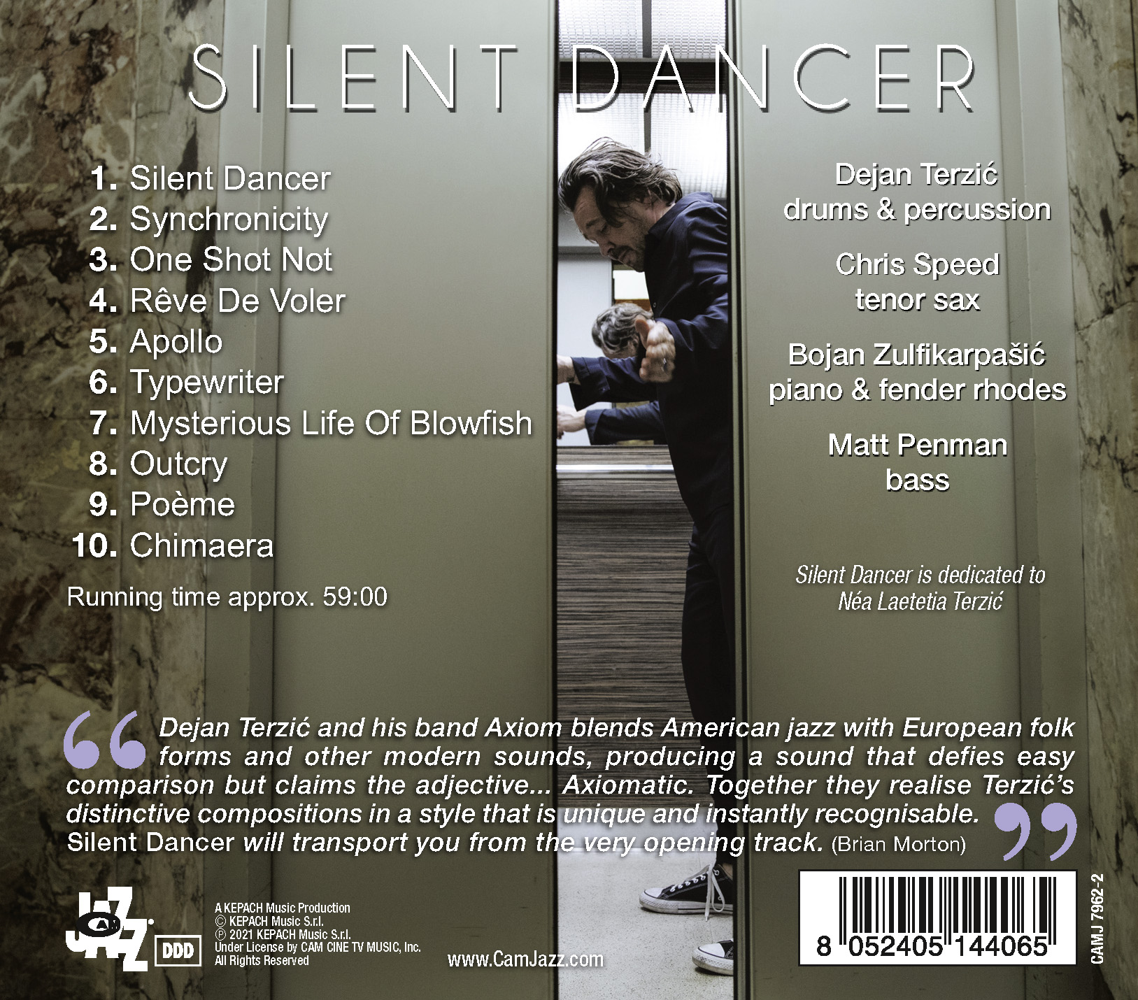 Womit wir bei einem weiteren wesentlichen Punkt dieser Einspielung wären. Die Besetzung hat für Dejan Terzić etwas sehr Autobiografisches. Bojan Zulfikarpašić kennt er seit frühester Jugend. Sein Onkel war der Musiklehrer des späteren Pianisten, der damals wiederum mit Terzićs Cousin in einer Band spielte. Man mochte einander, verlor sich irgendwann aus den Augen, weil es den Einen nach Frankreich verschlug und der Andere in Deutschland lebte, bis sich die separaten Wege unweigerlich wieder kreuzten und man beschloss, etwas Gemeinsames auf die Beine zu stellen. Der Spirit der gemeinsamen Jugenderfahrung ist immer noch spürbar. Chris Speed hörte Terzić zum ersten Mal, als dieser in den 1990er Jahren kurze Zeit in Nürnberg lebte, wo Terzić seit 1989 zuhause war. Für einige Wochen teilten sie sich sogar eine Wohnung. Nach einem Konzert von Speed mit dessen Alter Ego Jim Black in einem kleinen Nürnberger Club jener Tage erklärte der Saxofonist, er spiele nur mit Freunden. Diese Maxime sollte sich Terzić tief einbrennen und kommt auch auf „Silent Dancer“ (der Albumtitel bezieht sich auf seine Tochter Néa) zum Tragen. Ab 2002 nahmen Terzić und Speed mehrere Platten mit ihrer Band Underground auf. Matt Penman wiederum lernte er kennen, als er zu verschiedenen Gelegenheiten in Nils Wograms Band Root 70 einsprang. Zwischen dem Drummer und dem Bassisten entspann sich eine feste spielerische Beziehung, die das elastische Grundgerüst für Axiom bildet. Die Innigkeit, mit der die vier Musiker hier miteinander verbunden sind, erinnert an eine Rockband, bei der es mehr auf den Gesamtsound ankommt als auf die Einzelleistungen. „In dieser Band gibt es keine Sidemen. Ich mag das Konzept von Sidemen und Leader sowieso nicht besonders. Egal, was jeder von uns in anderen Projekten macht, hat Axiom einen Sound, den sonst keine andere Band hat.“