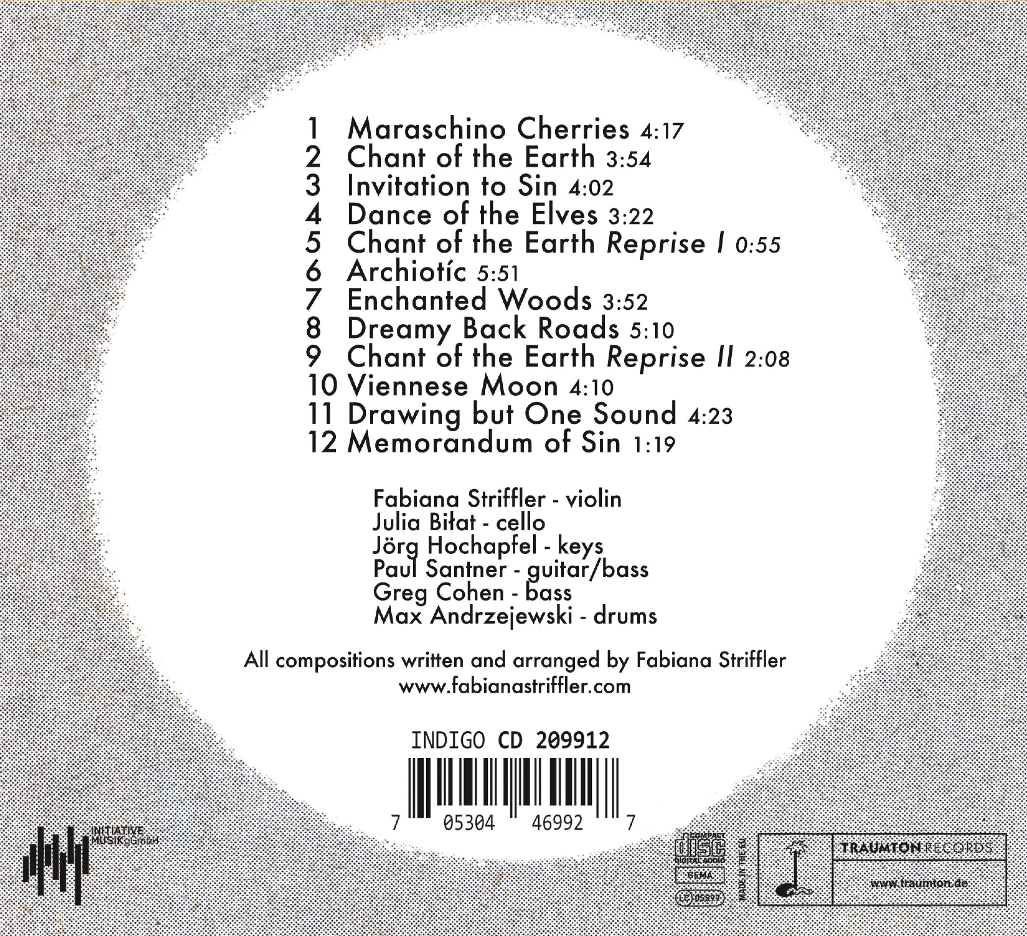 Der Reichtum an Klangfarben ist auch ohne Stimmen enorm, ebenso die Spannweite und Suggestionskraft von Strifflers Stücken. Der süße Aufmacher des Albums, Maraschino Cherries, scheint melodisch zwischen Zirkus und Italo-Pop (Striffler hat ihre Kindheit in Italien verbracht) zu balancieren und bringt dafür charmant lächelnd Jazzbassgrooves, skurriles Synthiezwitschern und Geigenpizzicati zusammen. Auch das folgende Chant Of The Earth lockt mit eingängigem Leitmotiv, tendiert indes deutlich zu anglo-amerikanischen Folk-Traditionen. Die bewusste Aneinanderreihung von Wiederholungen des Themas kritisiert Repetitionen aus Werbung und Radio und kehrt deren Absicht um. „Wiederholung kann auch bedeuten, sich völlig auf etwas einzulassen und zu fokussieren. Chant Of The Earth soll ein Aufruf sein, der Erde zuzuhören“ erklärt Striffler, „deswegen gibt es auch die beiden Reprisen. Die erste erzählt mittels einer ungewöhnlichen Kontrabass-Gitarre, wie es auf dem Planeten vor unserer Existenz aussah. Und die zweite stellt die Auswirkungen der Menschen auf der Welt dar: Schönheit und Metallschrott“.