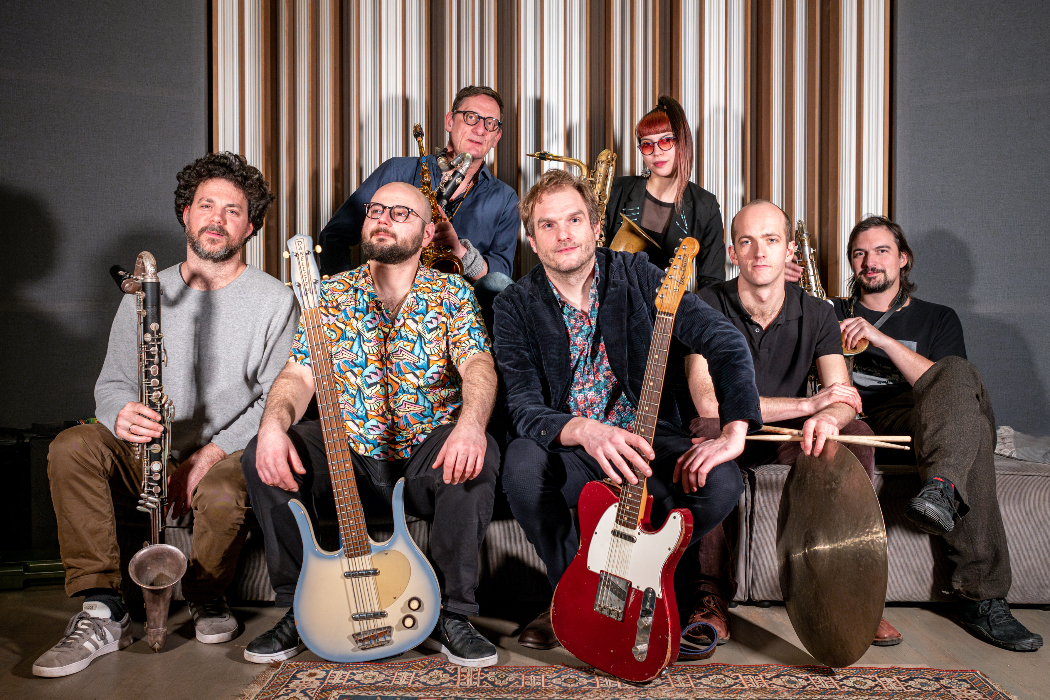 Das erste Stück, es heißt, kein Wunder, „Waffle House“, klingt überraschend, wie eigentlich immer im Falle dieser Band. Aber im Nachhinein dann doch auch so, wie man das von einem Opener eines Albums mit dem Titel „Katastrofik Kink Machine“ erwarten kann. Jazz, der rockt, Rock, der sich so frei anfühlt wie eine Jazz-Impro, hier nun aber in Form eines Big-Band-Arrangements. In den ersten Sekunden wird die Gitarre gezupft, dann schieben sich Bläser (Klarinette/Altsaxophon, Tenorsaxophon, Bassklarinette, Baritonsaxophon) ins Bild, und „Waffle House“ hangelt sich fröhlich von einer Eskalationsstufe zur nächsten. Immer wieder unterbrochen von improvisierten Solopassagen, die schön am Abgrund entlang balancieren.